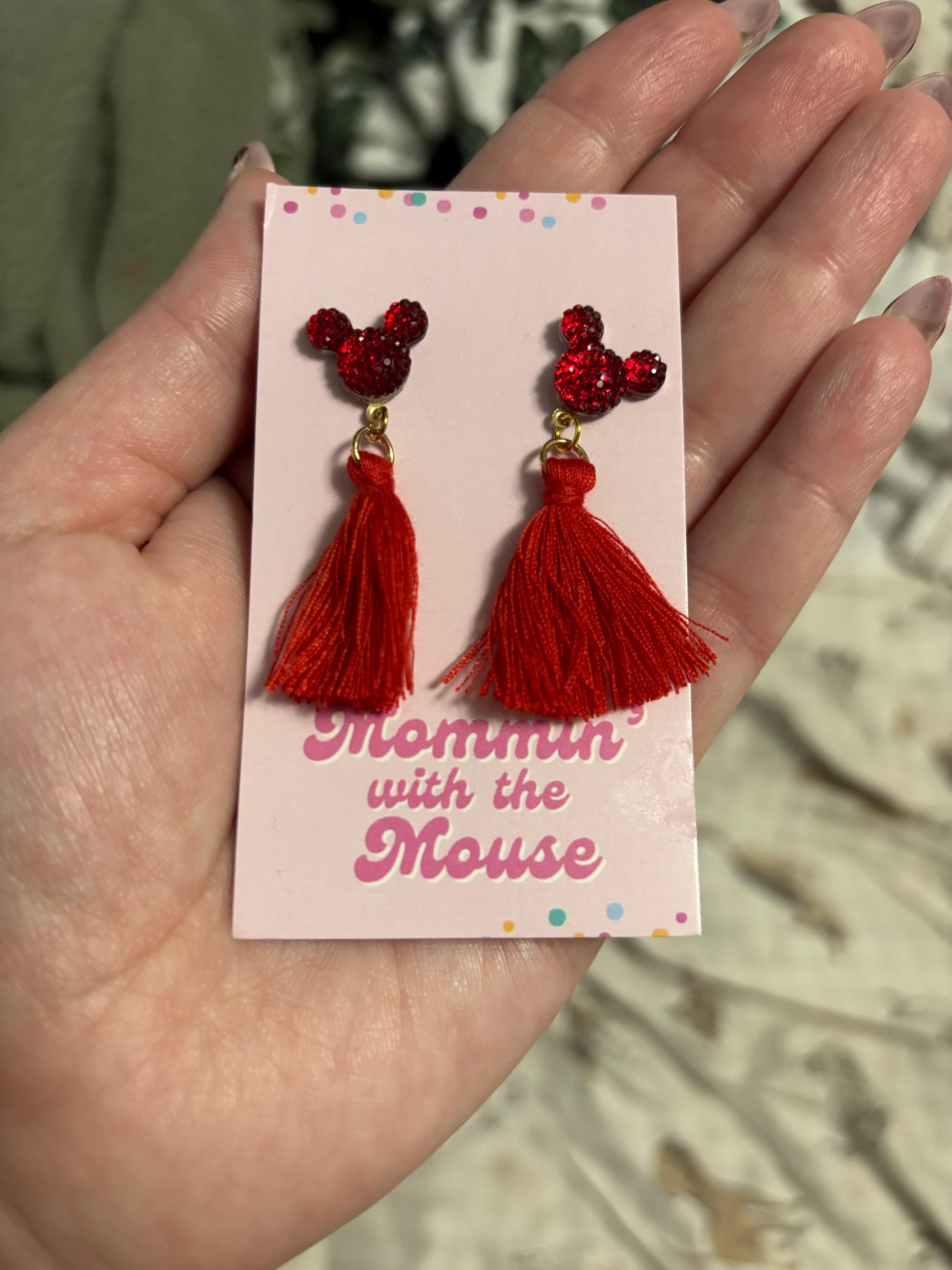 Sparkle Mickey Tassel Earrings. These cute 2" Mickey tassel earrings are the perfect addition for your Disney day or everyday!