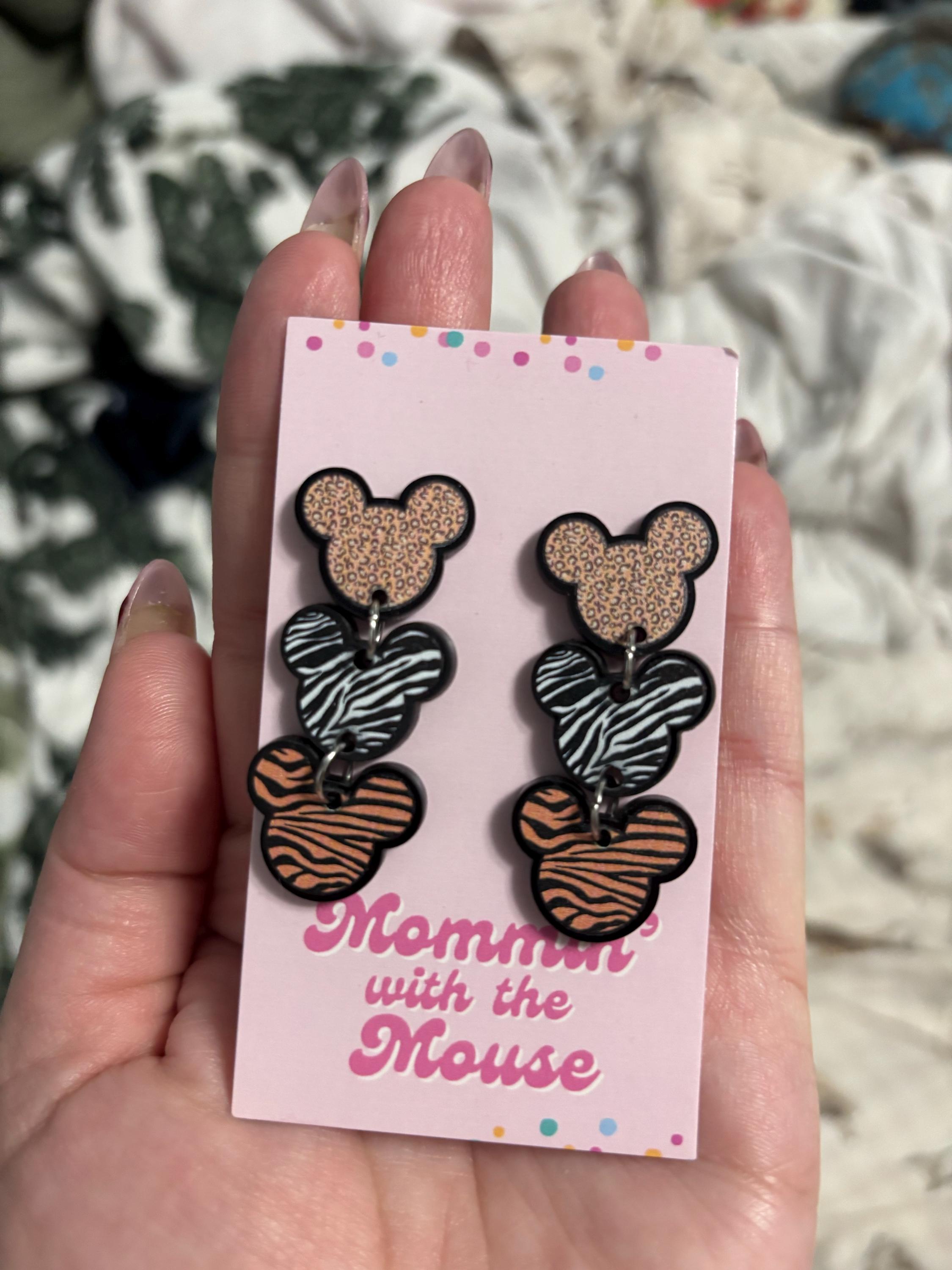 Go Wild in these Cheetah, Zebra and Tiger print Mickey earrings.