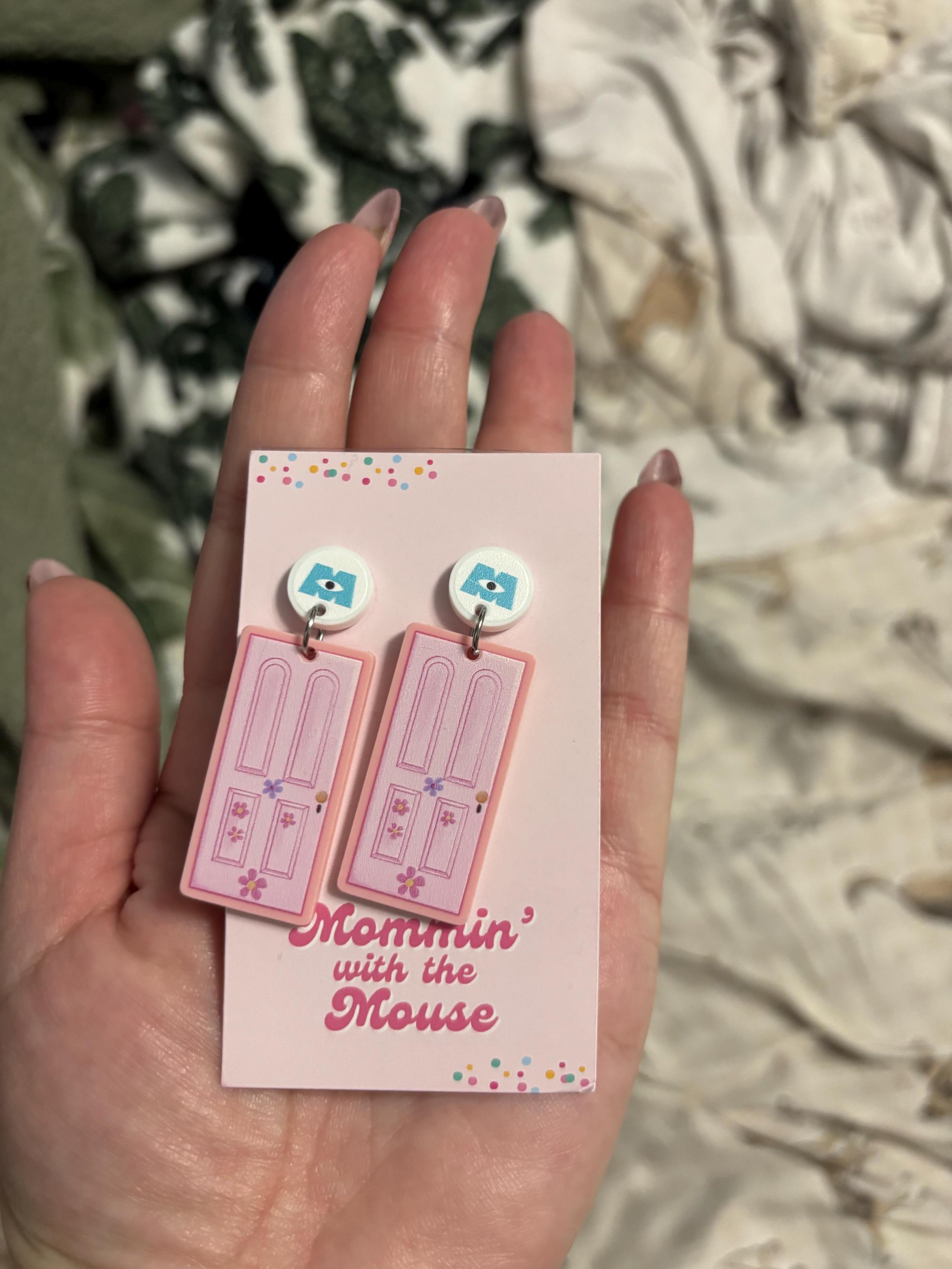 Boo's Door earrings measure 2" long. They are acrylic with stainless steel hypoallergenic posts.