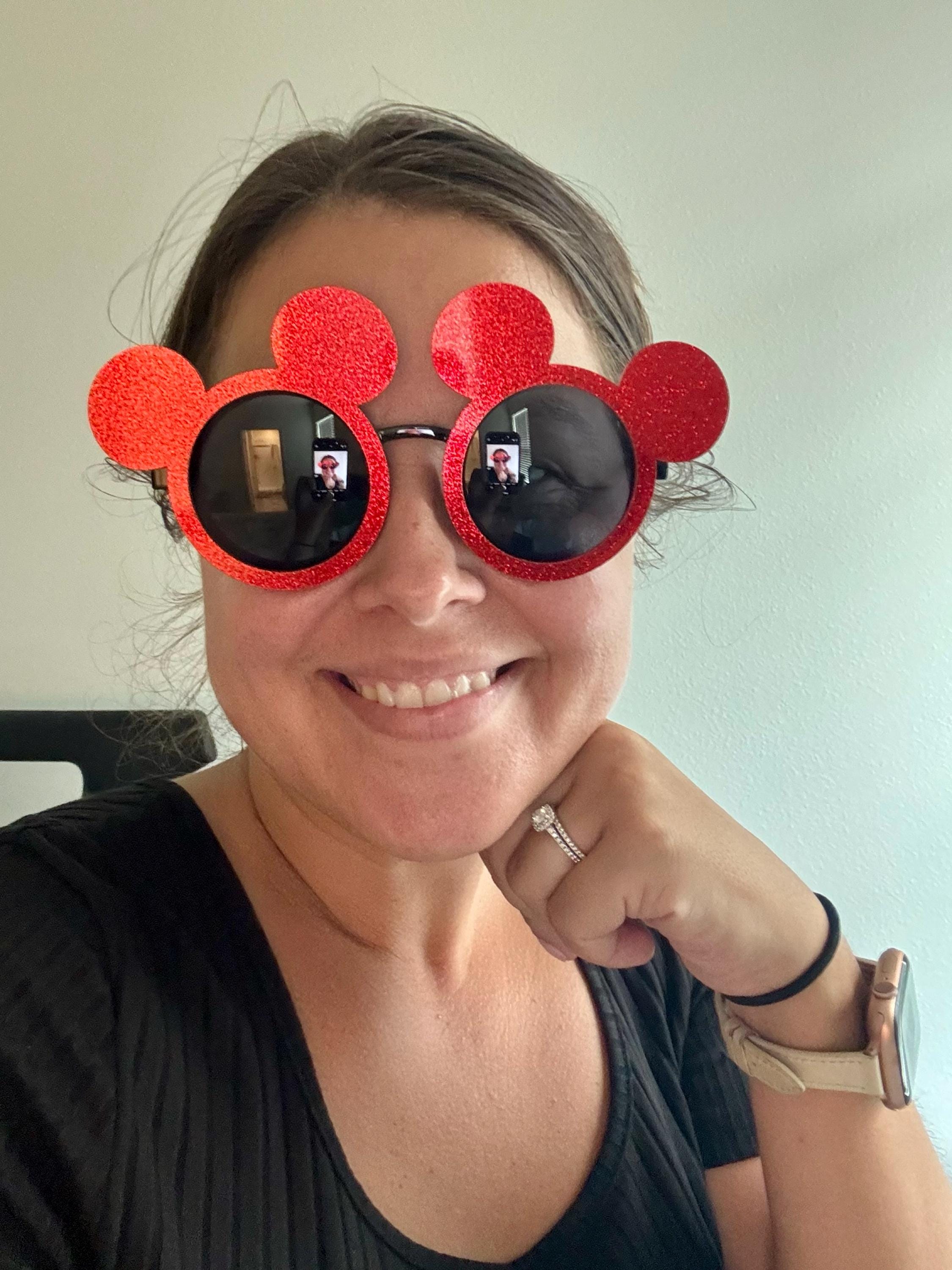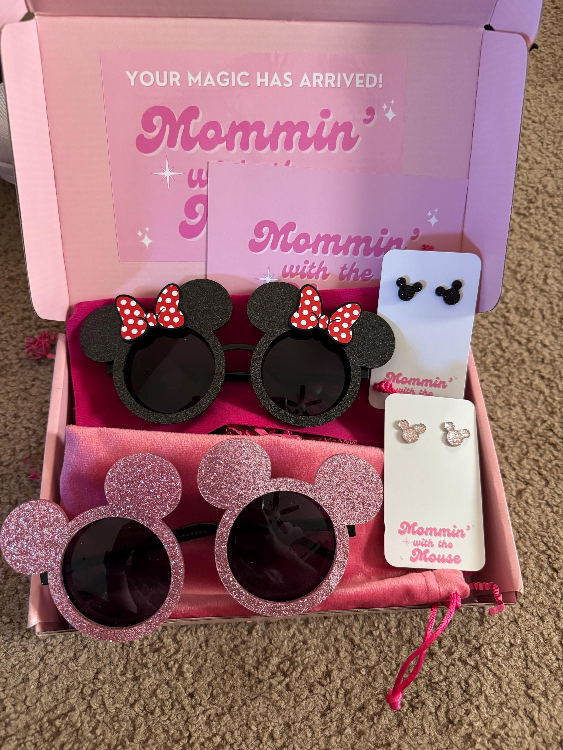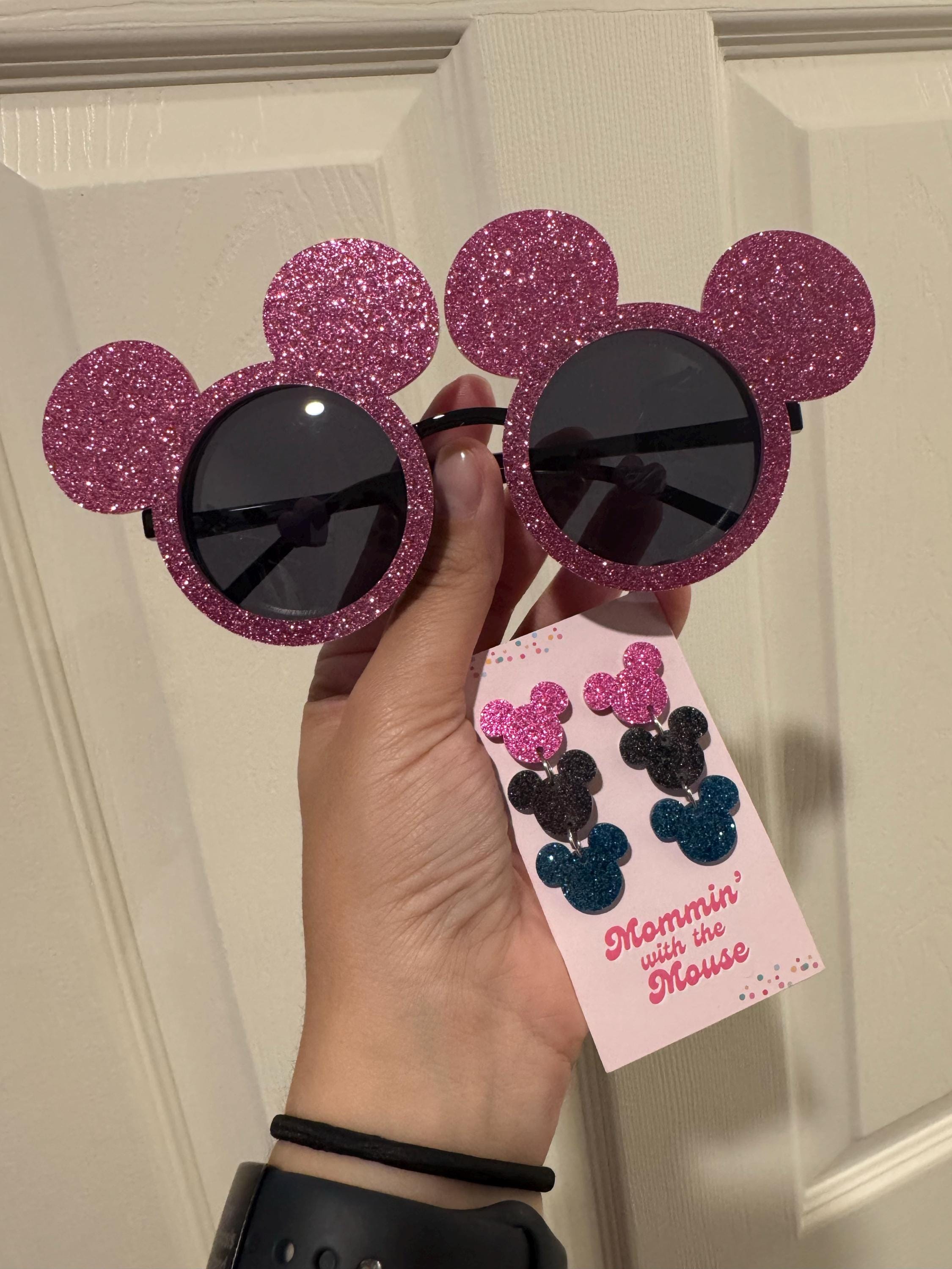 Adult Mickey and Minnie shaped sunglasses come with all black plastic frames.